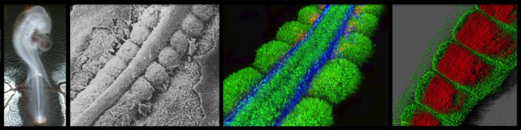 Un deuxième axe de recherche est d’étudier la formation précoce du muscle squelettique dans les somites nouvellement formés afin de comprendre comment les cellules, au sein de ces structures, adoptent des destins cellulaires précis alors qu’elles sont exposées à un environnement complexe en constant changement. Ici encore, le modèle poulet, les techniques d’électroporation et d’imagerie in vivo sont essentielles pour observer et comprendre les comportements cellulaires (division, migration, élongation, etc.) et moléculaires (activation du programme myogénique, activation de voies de signalisation, etc.) se produisant de manière parfaitement coordonnée en des temps extrêmement courts.